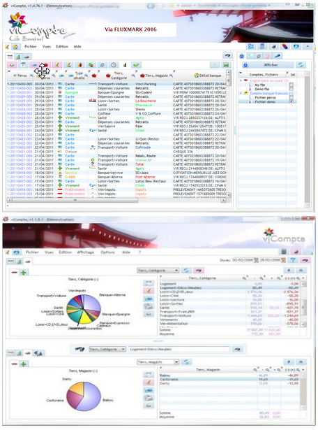Le logiciel professionnel gratuit de comptabilité personnelle ViCompte USB Fr 2016 est un logiciel portable compatible Windows 32 et 64 bits qui vous permettra une gestion facile de vos comptes tout en vous présentant vos recettes et dépenses de manière simple , claire et graphique. Voici tous les fichiers sur lesquels vous allez pouvoir travailler car ces formats sont supportés par le logiciel ViCompte : XLS, RTF, QIF, OFX, TSV et CSV . le navigateur internet intégré à ViCompte vous aidera à importer des fichiers directement depuis vos comptes bancaires ce qui vous fera gagner un temps appréciables concernant la saisie manuelle de toutes ces écritures .